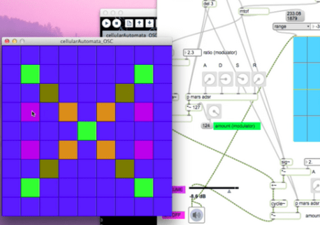 Objects receive real-time triggers called “bangs” through their inputs, which can be passed onto other objects in turn. As well as receiving control data, some Max objects process audio signals – as designated by a tilde symbol suffix (~). Max interfaces seemlessly with the Audio/MIDI interface capabilities of the host computer, allowing for easy and reliable integration with all aspects of contemporary project studio operation. In addition to sending and receiving audio or data to/from speakers/live inputs and hardware synths/controllers (via Open Sound Control (OSC), as well as, MIDI), Max integrates with projectors, lighting rigs and Arduino-based electronics extensions including motors, sensors and DIY-designed user interfaces. Even in the software realm Max interfaces just as easily with text-based computer programming platforms such as the “creative coding”-orientated OpenFrameworks (C++) and Processing (Java).