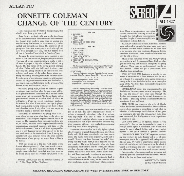 Change Of The Century: Liner Notes by Ornette Coleman (1960)
